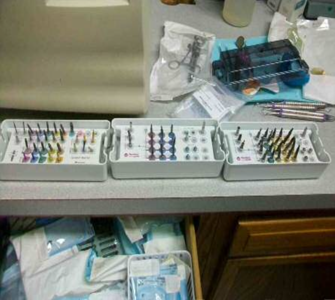 1 Straumann Group,1 lot of assorted Narrow tapered drills, boone leveling drills, Easy guide surgical kit cases, drivers, torque wrenches, depth probes, GM cover screws, GM healing abutments, implants.